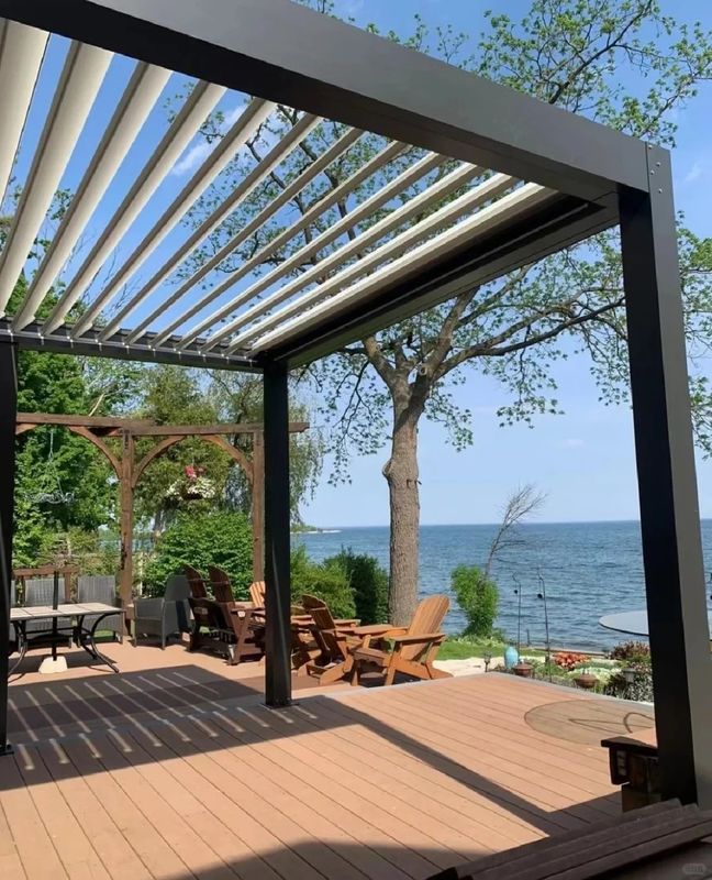 Erleben Sie den perfekten Tanz zwischen Architektur und Natur mit unserer Motorisierten Lamellenpergola - wo jeder Outdoor-Moment zu einer geschätzten Erinnerung wird.